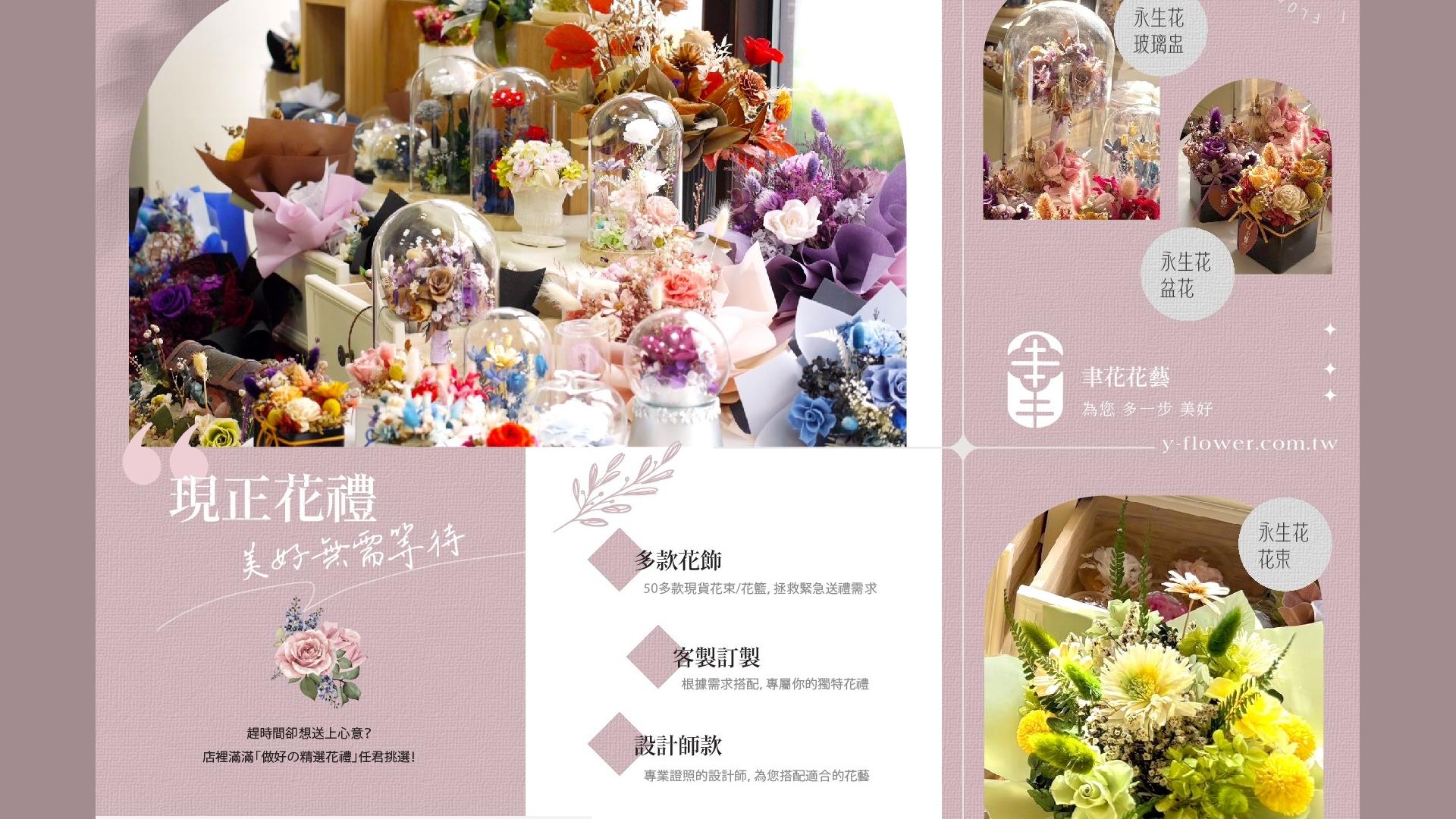 根據您的喜好和預算,選擇不同的花材、顏色、風格和包裝,用心打造最美花束禮物。無論是慶祝生日、紀念日、求婚或道歉、各式活動商業場合,我們都可以為您專屬訂製,讓我們為您創造一份客製花禮吧!