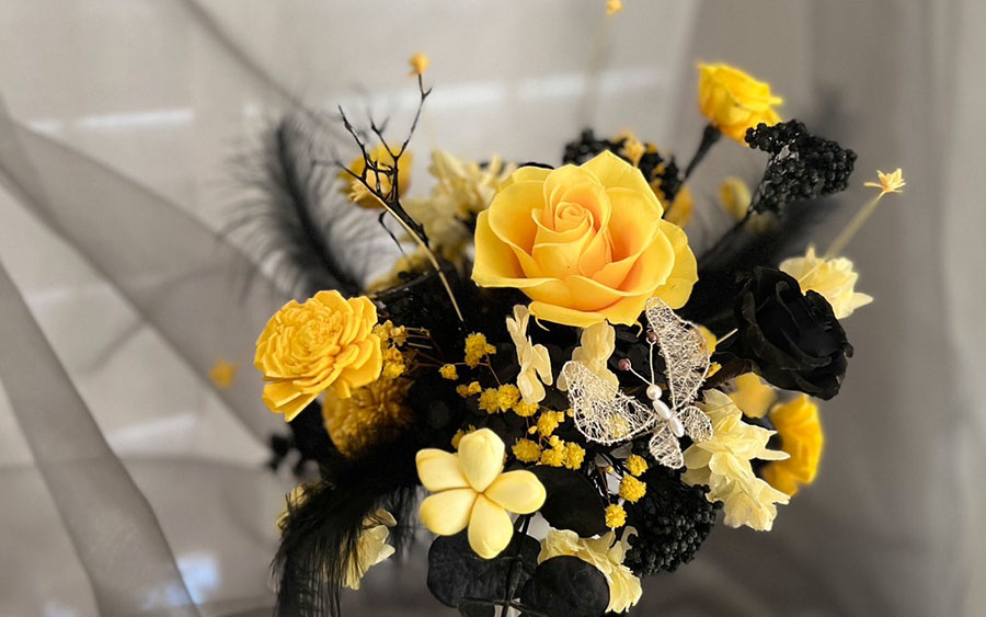 課程中您將學習如何處理不凋花材與作品呈現層次技巧掌握,並獲得專業指導和認可。